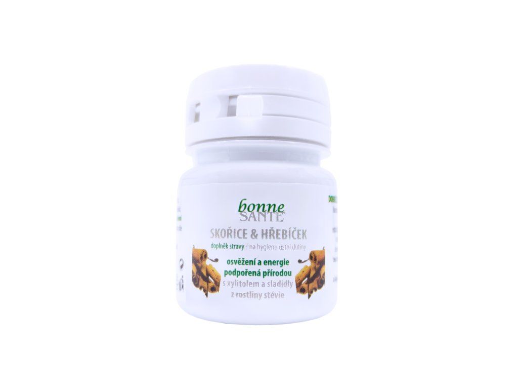 Složení: sorbitol; stearan hořečnatý; xylitol; menthol; stevioglykosidy; silice z hřebíčku, citroníku lemonového, řebříčku obecného, vanilky pravé, skořicovníku cejlonskéhoa pepře černého; extrakt ze skořicovníku cejlonského.